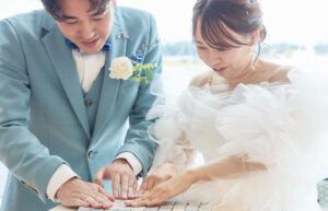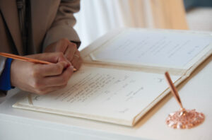 結婚証明書は、その場で完成させる瞬間があるだけで、挙式の空気がぐっと引き締まります。